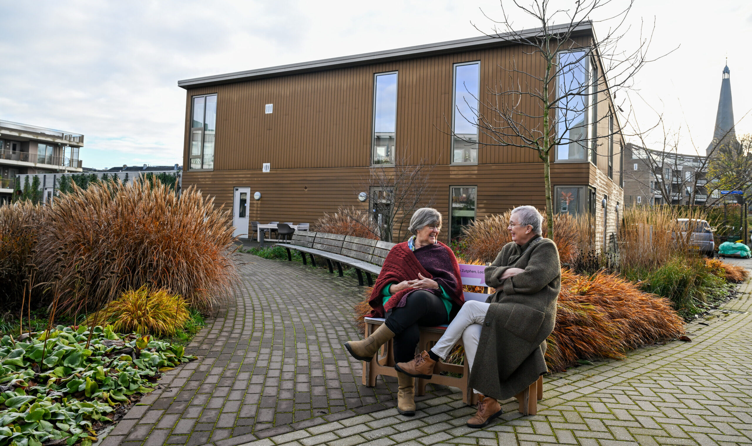 Maria is 77 jaar oud en woont drie jaar op het Ubuntuplein. Het omzien naar elkaar loopt als een rode draad door haar leven. Ze heeft 20 jaar een zorgboerderij gehad in Loenen, waar ze jongeren en ouderen met verschillende behoeftes hielp. Haar man overleed zes jaar geleden, wat leidde tot haar verhuizing naar deze plek. Lot is 67 jaar en woont sinds een jaar op het Ubuntuplein. Vanaf de start rond de planvorming voor dit prachtige wooncomplex was ze al betrokken, inmiddels jaren geleden.
